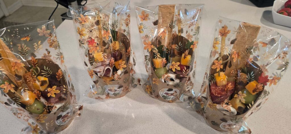 Pequeñas obras de arte comestibles: copas individuales con carnes frías, quesos, frutas y acompañamientos gourmet, presentadas con un toque elegante.